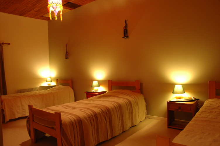 Chambre Antika, aménagée dans un style ancien, composée d'un lit de 120 cm et de 3 lits de 90 cm donnant accès à une salle de bain.