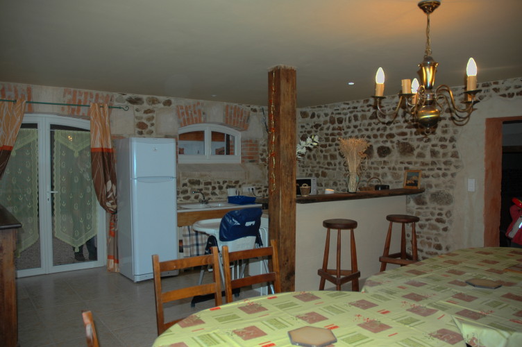 La cuisine et le salon, se trouvent au rez de chaussée. Le coin cuisine est entièrement équipé : Réfrigérateur + congélateur, four à gaz, four micro-ondes, lave-vaisselle, cafetière, grille pain, etc.