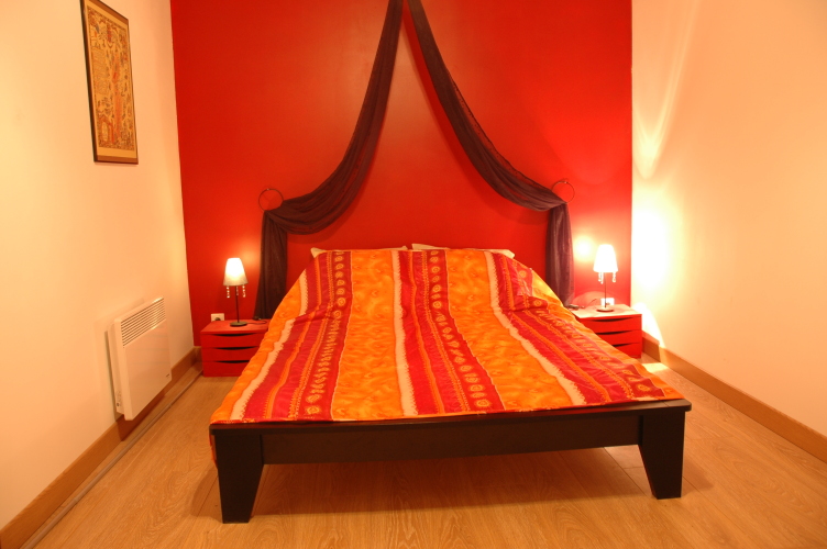 Un couloir donne accès à trois chambres indépendantes, chacune aménagée dans un style particulier.